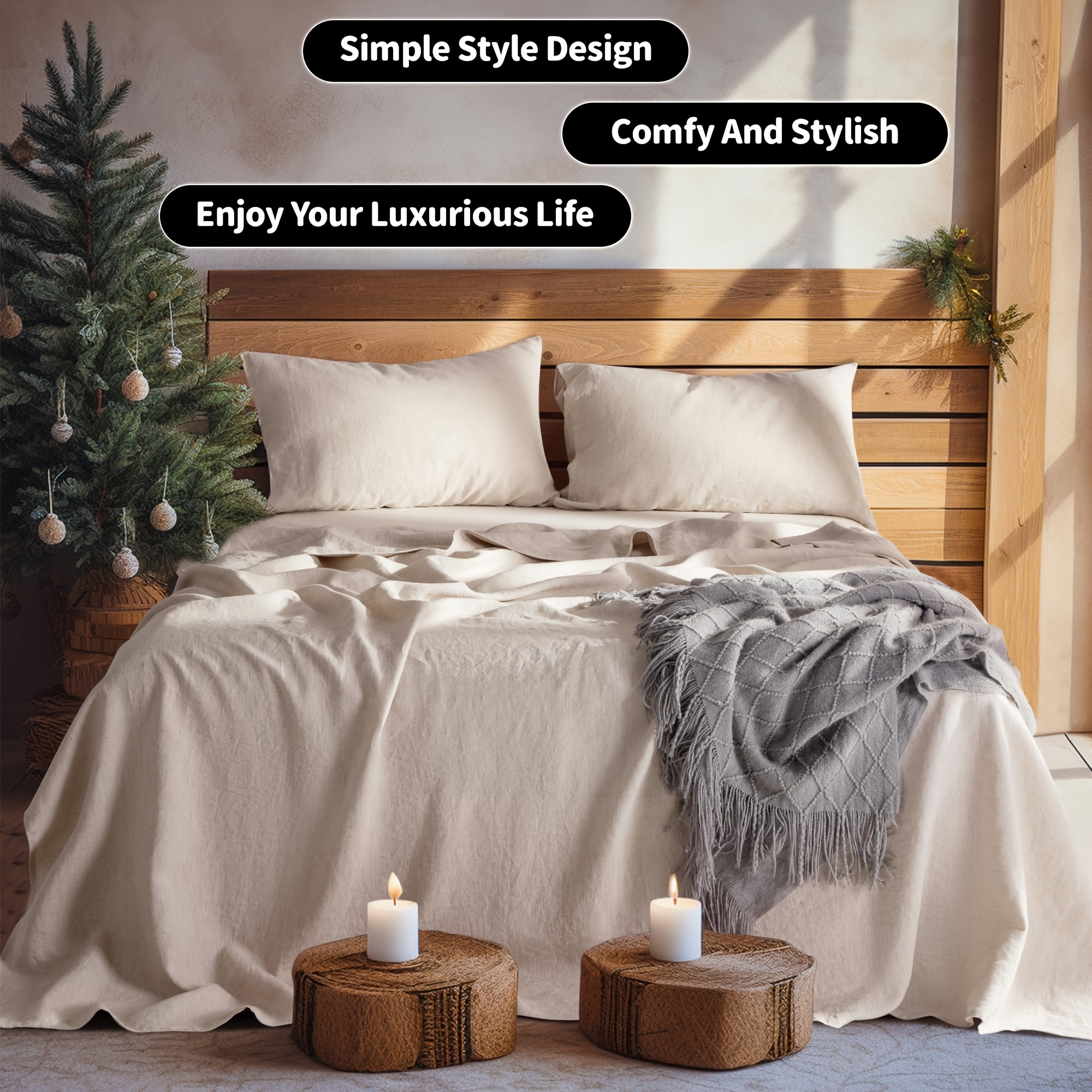4pcs Premium Linen Sheets, Linen- Blend, Breathable And Durable Queen Size Bed Sheets, Tear-Resistant, Machine Washable, 16\